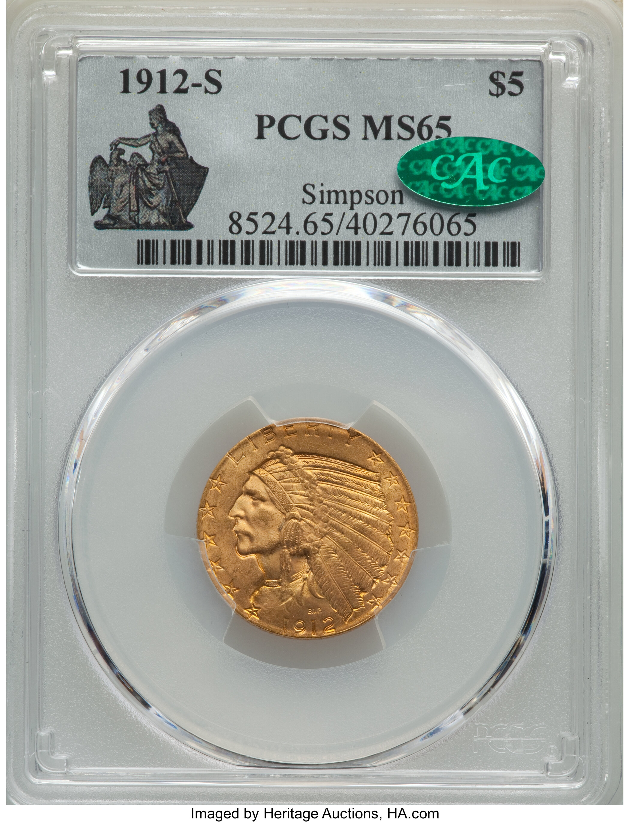 This was one of those sales that set off alarm bells in our code. From a recent Heritage Signature auction, this Half Eagle is the sole finest PCGS example. Realizing a price of $312,000.00, if you look back at our sales history chart, you'll see this exact same coin sold in 2011 for $195,500.00.
